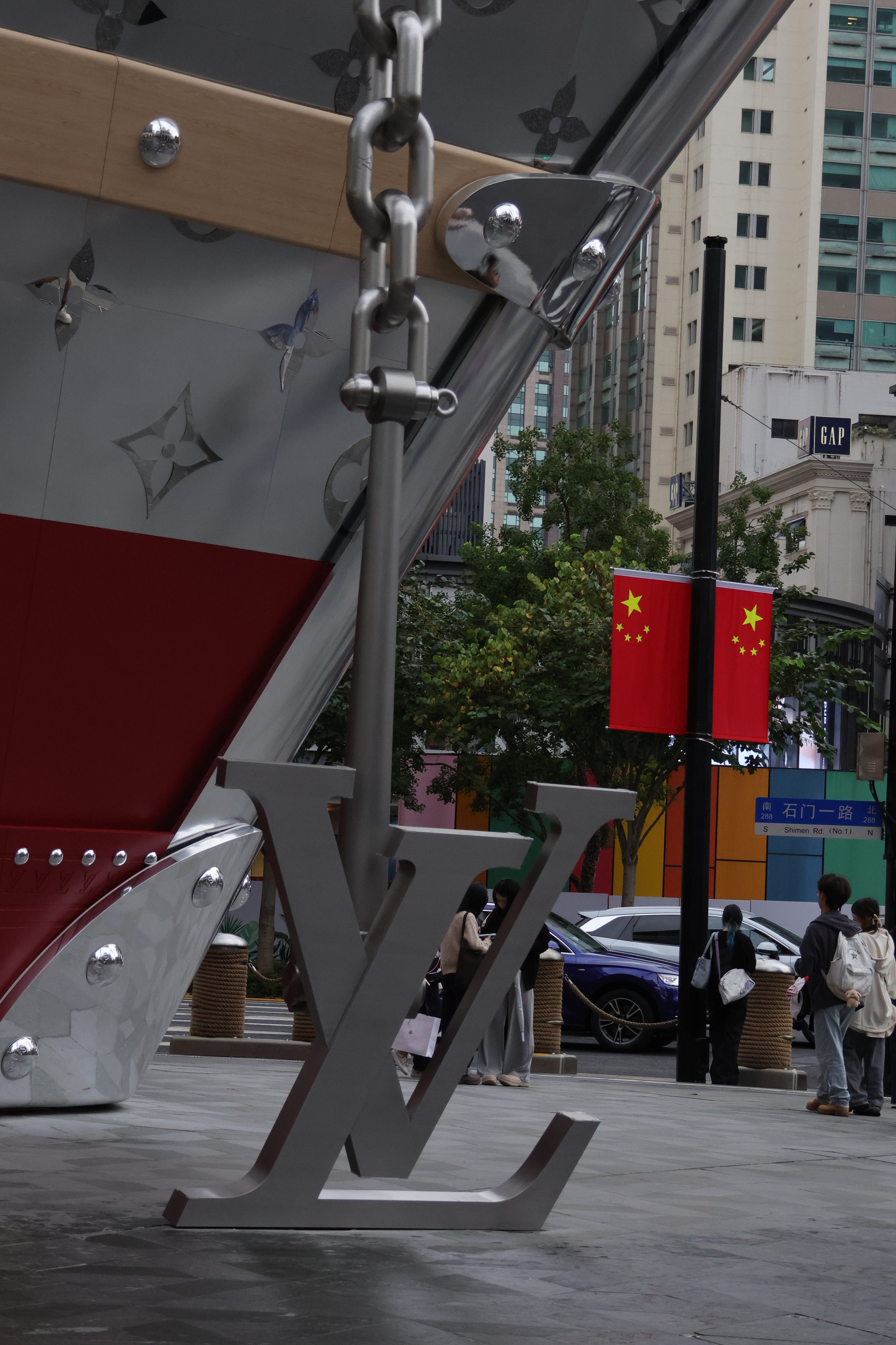 Shanghai es una de las ciudades más caras del mundo (la sexta en 2025). Me ha impactado muchísimo la cultura del lujo que existe aquí. Desde el primer momento sientes que es una ciudad sumamente consumista y cada rincón está orientado a la venta. Esta fotografía la he sacado en el centro de la ciudad, en West Nanjing Road. Una tienda exclusiva de Louis Vuitton que es, literalmente, un barco gigante en medio de la calle. El plano con las banderas de la República Popular de China de fondo me encanta. Estoy pensando mucho en esto últimamente 💭