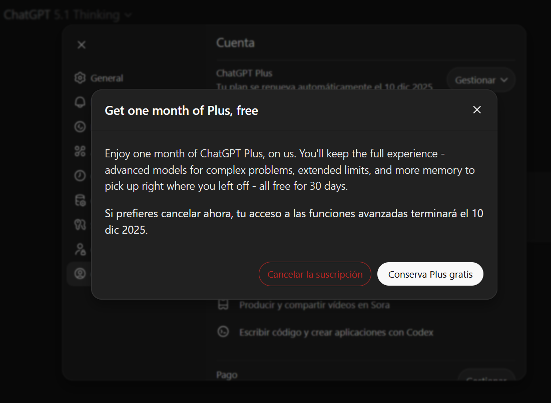 Llevaba meses pensando en esto y para mí ya era cuestión de tiempo terminar de dar el paso: Después de más de 2 años, he cancelado mi suscripción a ChatGPT Plus. La brecha entre los diferentes laboratorios de Inteligencia Artificial Generativa (OpenAI, DeepMind, Anthropic y xAI) se ha reducido drásticamente y ya no le veo tanto sentido a seguir pagando más de 20 euros al mes por las últimas novedades de ChatGPT. La coyuntura personal también ha incidido en este cambio. Soy un enamorado del ecosistema de Google y un heavy-user de su sistema Cloud. Mi viaje a China terminó de agotar el poco espacio que tenía disponible para seguir guardando fotografías en Google Photos y me ha tocado pasar por caja. Aquí es donde me he llevado una grata sorpresa: La suscripción de 99€/año (Google One Premium) ya no solo incluye 2 TB de espacio Cloud, sino también acceso total a las funcionalidades Pro de Google Gemini. Algunos han bautizado este plan como el ChatGPT-killer y no les falta razón… Conmigo les ha funcionado 🤭